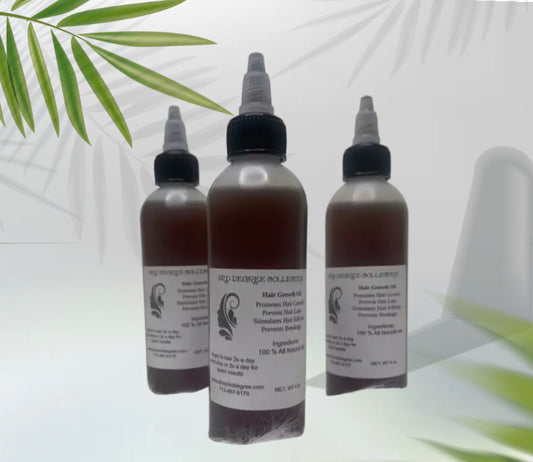 Our homemade all natural hair growth oil promotes hair growth, prevent hair loss, and heals sensitive scalp, open closed hair follicles, stimulates hair growth.